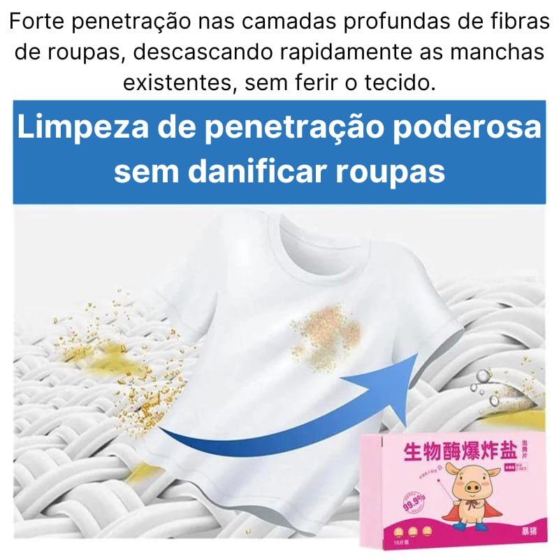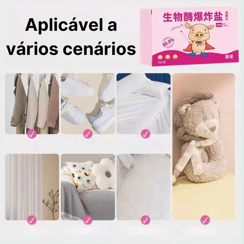 Os detergentes comuns não conseguem limpar manchas pesadas de óleo. Não se preocupe! Nosso sal explosivo bioenzimático irá ajudá-lo a resolver seu problema facilmente. Esta é a maneira mais fácil de limpar todos os tipos de manchas. Apenas uma peça e qualquer uma de suas roupas, sapatos ou xícaras estarão limpos como novos!
